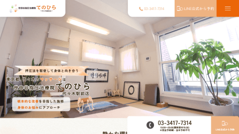 世田谷指圧治療院てのひら-代々木駅前店では、静かな環境で受けられる身体のケアを何よりも大切にしています。完全予約制により、患者様一人ひとりに集中した時間を提供し、落ち着いた雰囲気の中で丁寧な施術を行っています。当日予約は不可としており、事前に予約いただくことで、患者様のスケジュールに合わせた計画的な治療が可能となります。