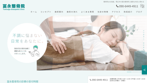 冨永整骨院では、地域の皆様が気兼ねなく相談でき、安心して通い続けられる整骨院であることを大切にしており、温かく親しみやすい雰囲気づくりに力を入れています。予約制を基本とすることで患者様の貴重な時間を無駄にせず、じっくりと時間をかけた丁寧な施術を提供していますが、急な痛みや緊急性の高い症状が発生した際には、可能な範囲で柔軟に対応できる体制を維持しています。院内は常に清潔に保たれ、落ち着いてリラックスできる空間となっており、初めての方でも緊張せずに相談できる環境が整っています。