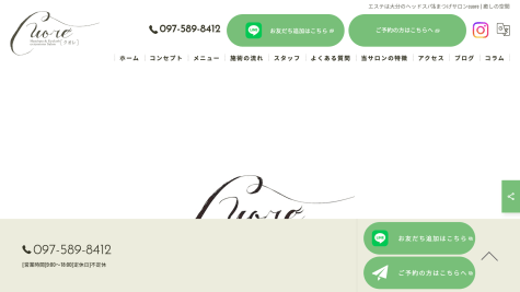 ヘッドスパ&まつげサロンcuoreでは、丁寧な施術で好評を得ている福岡の隠れ家風サロンの確かな技術を大分で体感できるエステサロンとして、幅広いメニューを展開しています。ヘッドスパやまつげパーマといった多彩な美容ケアを提供し、お客様のニーズに柔軟に対応することで、理想の美しさと深いリラクゼーションを同時に実現します。アロマの香る落ち着いた環境の中で、ゆったりとした時間をお過ごしいただけるアットホームな空間づくりを心がけています。