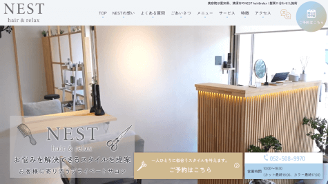 NEST hair&relaxが大切にしているのは、髪を整えるだけでなく気持ちまで穏やかになれる空間づくりです。日々の忙しさから解放され、自分だけの時間をゆったりと過ごしていただけるよう、落ち着いた雰囲気とプライベート感を重視したサロン設計を行っています。周囲を気にせず心からリラックスできる環境で、美容院ならではの丁寧な施術を体験いただけます。 愛知県清須市阿原星の宮に位置し、駅からのアクセスも良好で駐車場も完備しているため、通いやすさも魅力となっています。地域密着型のサロンとして、どのお客様にも安心してご利用いただける環境を整えています。長く通える信頼できるサロンとして、心地よいサービスを通じて髪と心が自然に整う特別なひとときをお届けいたします。