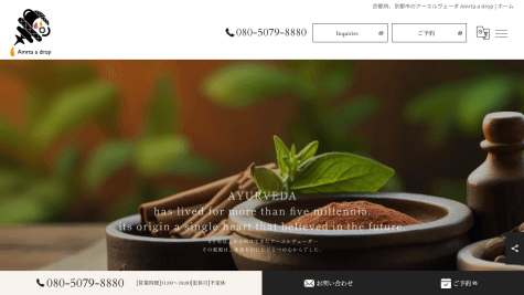 京都の落ち着いたプライベート空間で、アーユルヴェーダ Amrta a dropは悠久のインドに受け継がれてきたアーユルヴェーダの叡智に基づく施術を提供しています。石川県能美市のプライベートサロンsuvakirima(スウァキリマ)と姉妹店として運営され、両店ともに質の高いサービスを展開しています。日常から解き放たれ、ご自身の深奥から響く声にそっと耳を澄ませる特別な時間を、京都という土地の持つ静けさとともに体験していただけます。 太古の昔から受け継がれてきたアーユルヴェーダの智慧は、私たち一人ひとりが持つ、かけがえのない生命の輝きを呼び覚ますための贈り物です。移ろう日々の中で揺らぐ心と身体の調べを、アーユルヴェーダの叡智が静かに整え、魂が本来宿す調和と光へと導きます。心と身体を、本来あるべき姿へと還すことを目指し、深い内なる安らぎをお届けしています。
